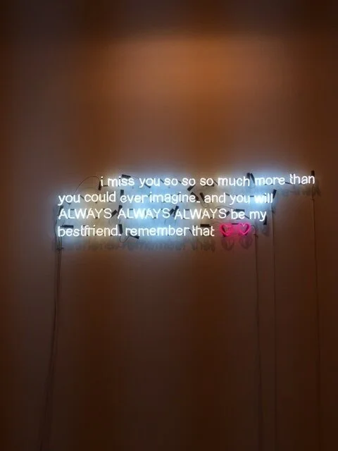 Toute la finesse de la démarche de Hsia-Fei Chang est dans cet « air de rien du tout », dans cette impression de légèreté girly qui a vite fait d’exprimer une violence terrible (car triviale) – la lourdeur de l’ennui, le ridicule des habitudes, la longue semaine d’une femme battue – ; mais aussi les angoisses du vide, de la solitude, de la peur, de l’amour, du mensonge, de la trahison, du regret. Et la violence d’être à son tour détournée par un humour qui n’a rien de cynique ou d’ironique, au contraire : c’est drôle, tendre et humble. L’artiste ne juge pas et surtout, elle ne laisse aucun sentimentalisme facile transpercer son travail. Des émotions oui, sincères et perçantes. Surtout des émotions immédiatement identifiables et absorbantes. Absorbantes comme ces belles photographies qui font écho au fait divers relaté, à l’histoire racontée ou au néon qui nous guide dans le cheminement de l’artiste.